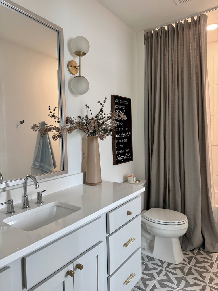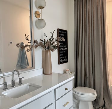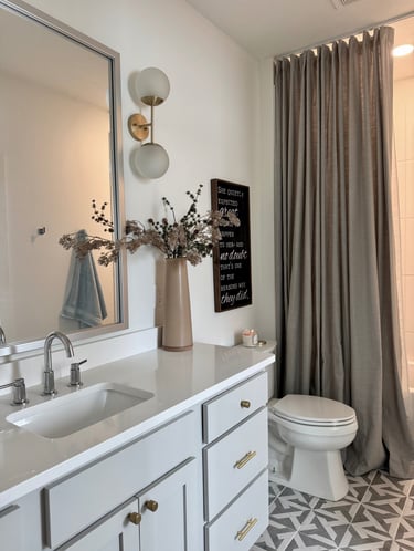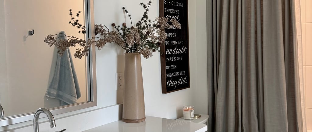 I have worked with Neutral Curtain in the past and loved the quality of their curtains and shades. When they reached out asking to work together again I couldn't wait. I had the perfect spot. I wanted to try a ceiling curtain mount with a real floor to ceiling curtain. The quality, custom length and width, color selection, and pleat selection were perfect for this bathroom. It took it from a nice bathroom to grande. I did install a ceiling mount and shower liner as well. What do you think? Would you try this?