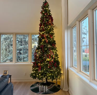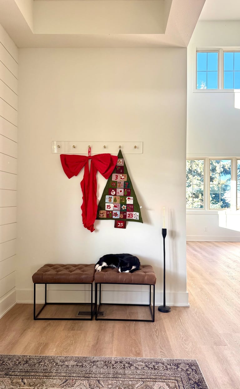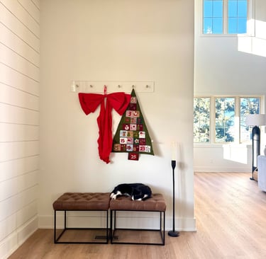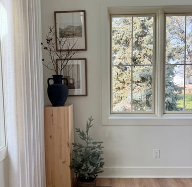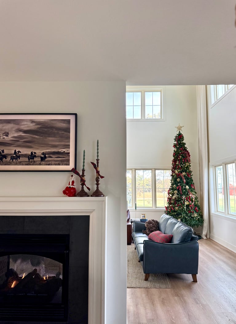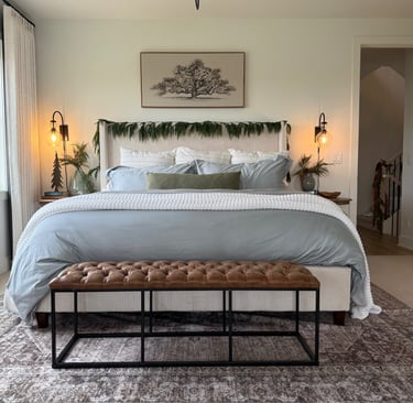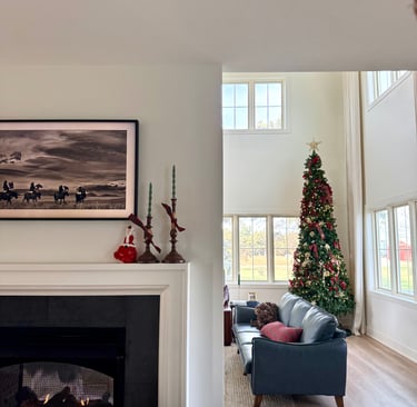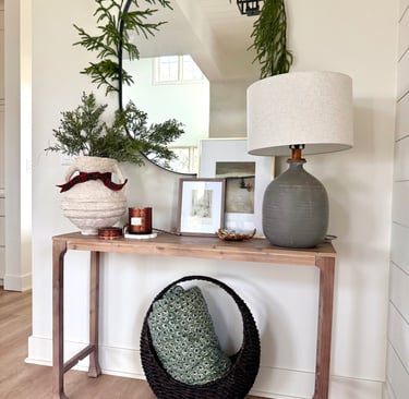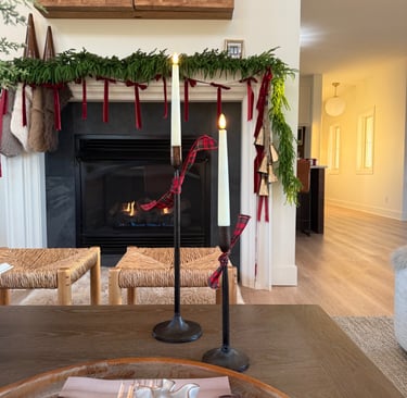 I love the holidays. It gets cold and darker and the inside of your home becomes even more important because we are there more often. I don't think you need to go buy a lot to make your home welcoming and warm. Lighting is key: instead of overhead lights switch to lamps and candles. I generally just buy a few things every year that I love and that are affordable. After 17 years I have a holiday collection, I guess you could say. I also think Facebook marketplace is a great idea to find affordable Christmas items. I have gotten quite a few Christmas decor including my 14 foot tree. Four things I do recommend as a must: Greenery, ribbon, and stockings, and a tree.