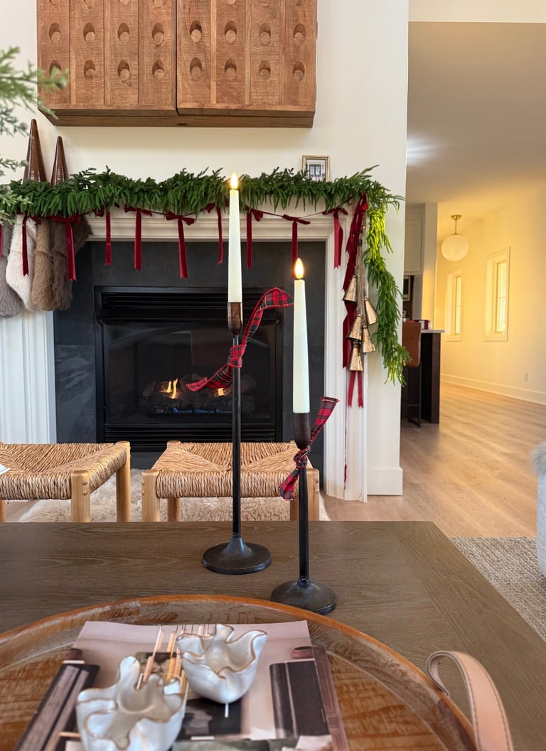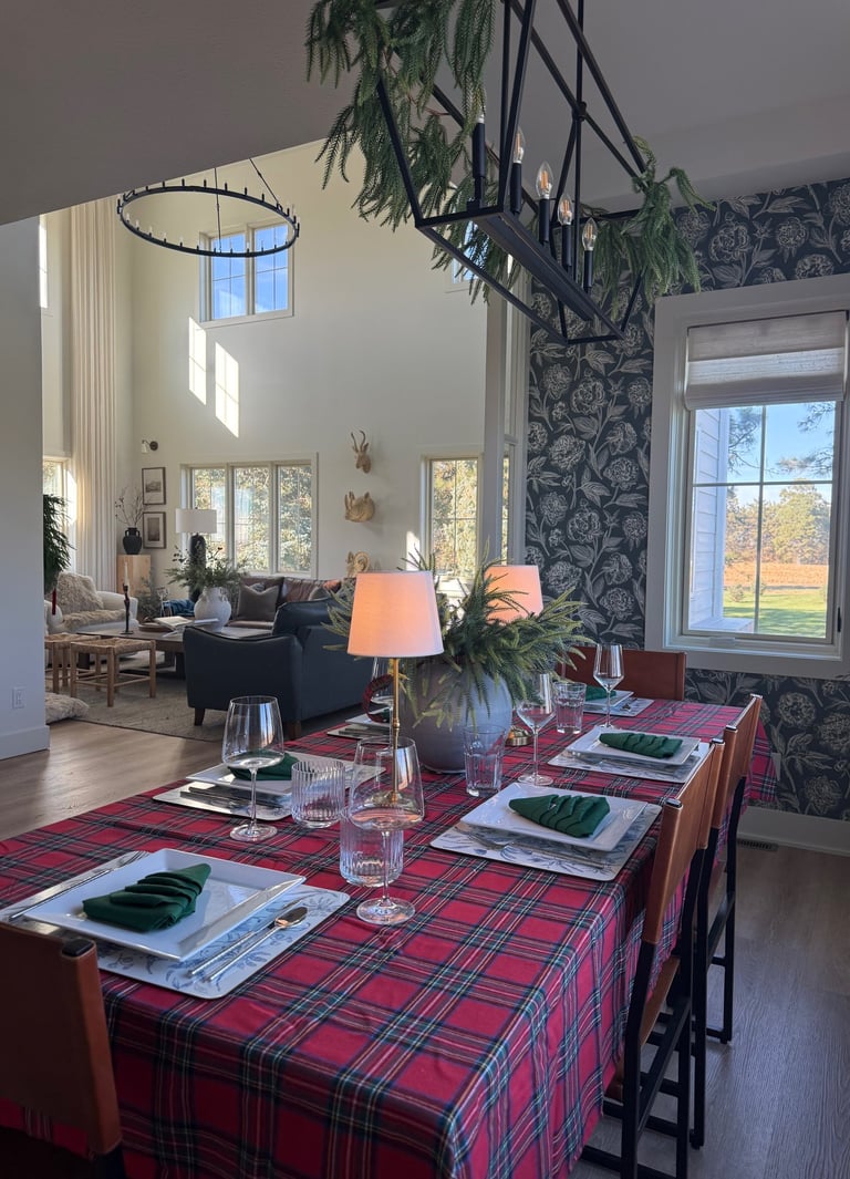 More plaid! I love this table cloth from Amazon. The lamps are a new favorite and I love the soft light they bring. The napkins are such good quality. Watch this reel to see how I folded them into Christmas trees.
