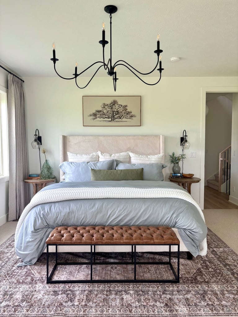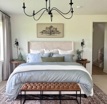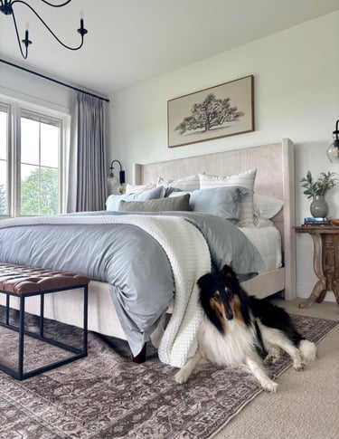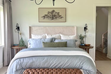 Then there is a budget. If we all had millions to throw at high end stores, homes, and interior designers we could create the beauty quickly. That's nice and fun, but there is some joy that comes from creating your own beauty. Then how do we do this? Well, don't be afraid to buy cheeper furniture. I did buy a cheep king size bed for $275 on sale and it is amazing. I also bought a media center for $150 and it works so good and is such quality. This is a risk, but with Amazon and Walmart they are really good with returns so I thought it was a risk worth taking. My nightstands were Facebook Marketplace finds. Don't forget to always look or browse marketplace for a good deal as well. It does take some time to find deals, but I promise it is worth it. I promise that creating beauty and peace in your home is a gift you give yourself. If you ever want help or to bounce an idea off me I would love it. I will link my affordable finds at the bottom.