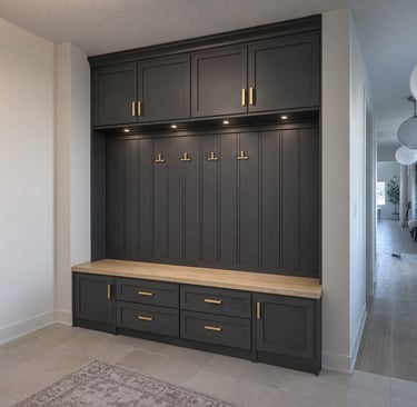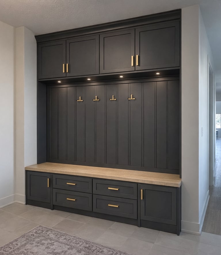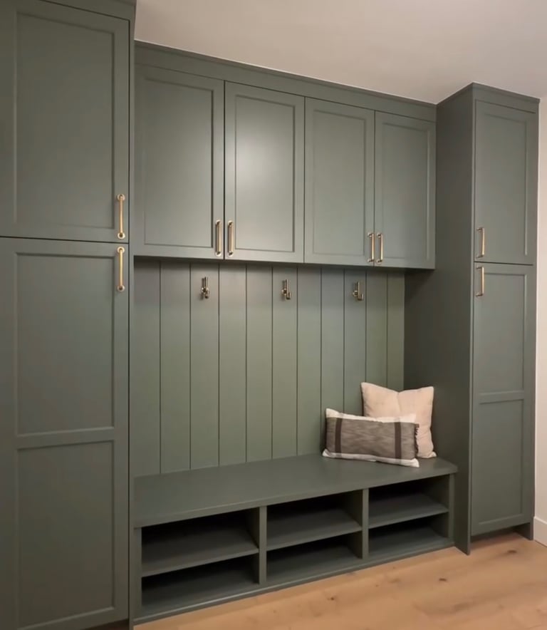 We have decided to build mudroom cabinets and we will also use Roman Clay to make over the two story fireplace.